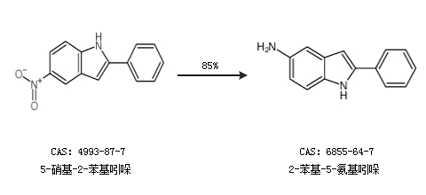 1.通过5-硝基-2-苯基吲哚合成2-苯基-5-氨基吲哚,收率约85%;