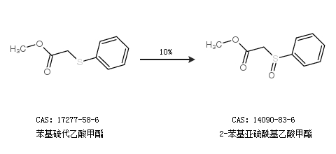 1.通过苯基硫代乙酸甲酯合成2-苯基亚硫酰基乙酸甲酯,收率约10%;