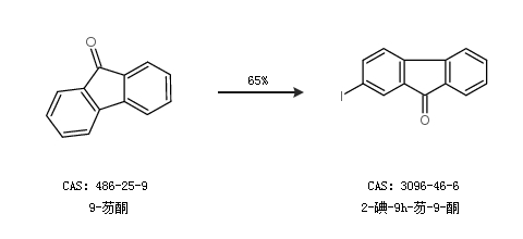 1.通过9-芴酮合成2-碘-9h-芴-9-酮,收率约65%;