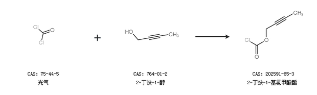 1.通过光气和2-丁炔-1-醇合成2-丁炔-1-基氯甲酸酯