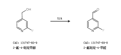 1.通过2-氟-4-吡啶甲醇合成2-氟吡啶-4-甲醛,收率约51%;