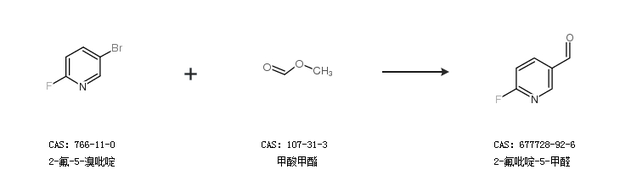 2.通过2-氟-5-溴吡啶和甲酸甲酯合成2-氟吡啶-5-甲醛