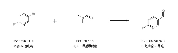 1.通过2-氟-5-溴吡啶和N,N-二甲基甲酰胺合成2-氟吡啶-5-甲醛