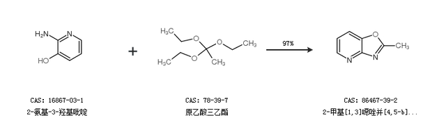 1.通过2-氨基-3-羟基吡啶和原乙酸三乙酯合成2-甲基[1,3]噁唑并[4,5-b]吡啶,收率约97%;