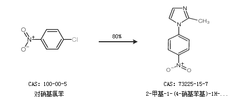 2.通过对硝基氯苯合成2-甲基-1-(4-硝基苯基)-1H-咪唑,收率约80%;