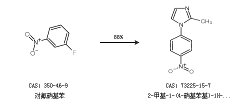 1.通过对氟硝基苯合成2-甲基-1-(4-硝基苯基)-1H-咪唑,收率约88%;