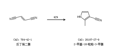 2.通过反丁烯二腈合成2-甲基-1H-吡咯-3-甲腈,收率约42%;