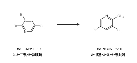 1.通过2,3-二溴-5-氯吡啶合成2-甲基-3-氯-5-溴吡啶