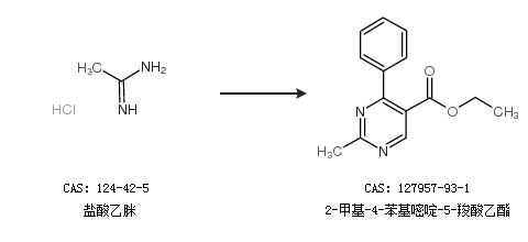 1.通过盐酸乙脒合成2-甲基-4-苯基嘧啶-5-羧酸乙酯