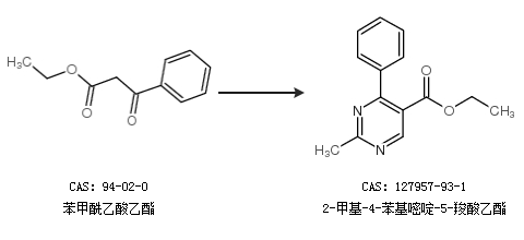 2.通过苯甲酰乙酸乙酯合成2-甲基-4-苯基嘧啶-5-羧酸乙酯