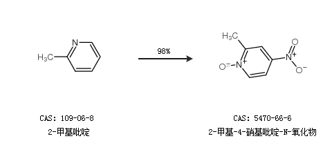 2.通过2-甲基吡啶合成2-甲基-4-硝基吡啶-N-氧化物,收率约98%;