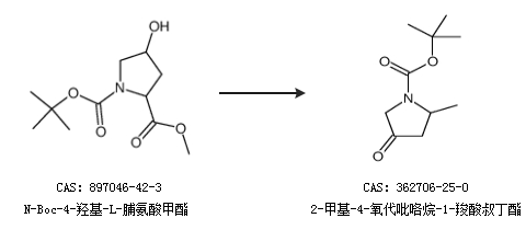 1.通过N-Boc-4-羟基-L-脯氨酸甲酯合成2-甲基-4-氧代吡咯烷-1-羧酸叔丁酯