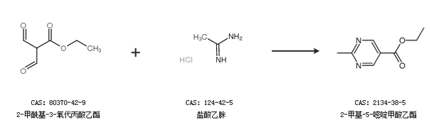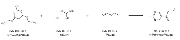 2.通过2-甲酰基-3-氧代丙酸乙酯和盐酸乙脒合成2-甲基-5-嘧啶甲酸乙酯