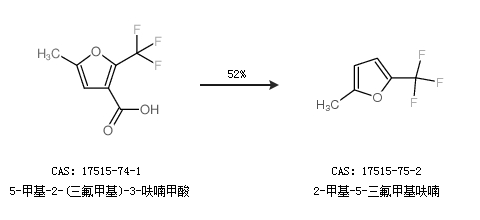 1.通过5-甲基-2-(三氟甲基)-3-呋喃甲酸合成2-甲基-5-三氟甲基呋喃,收率约52%;