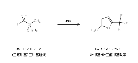 2.通过(三氟甲基)三甲基硅烷合成2-甲基-5-三氟甲基呋喃,收率约49%;