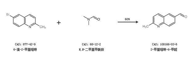 1.通过6-溴-2-甲基喹啉和N,N-二甲基甲酰胺合成2-甲基喹啉-6-甲醛,收率约60%;