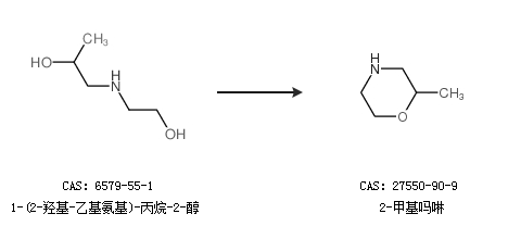 1.通过1-(2-羟基-乙基氨基)-丙烷-2-醇合成2-甲基吗啉