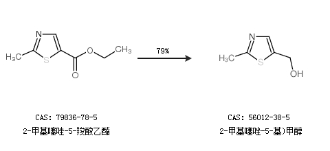 1.通过2-甲基噻唑-5-羧酸乙酯合成2-甲基噻唑-5-基)甲醇,收率约79%;