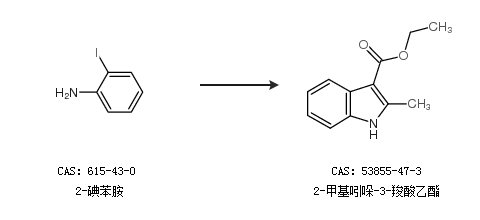 2.通过2-碘苯胺合成2-甲基吲哚-3-羧酸乙酯