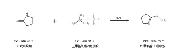 2.通过2-吡咯烷酮和三甲基氧鎓四氟硼酸合成2-甲氧基-1-吡咯烷,收率约82%;