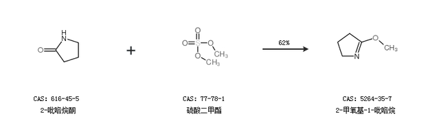 1.通过2-吡咯烷酮和硫酸二甲酯合成2-甲氧基-1-吡咯烷,收率约62%;
