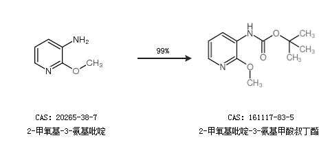1.通过2-甲氧基-3-氨基吡啶合成2-甲氧基吡啶-3-氨基甲酸叔丁酯,收率约99%;