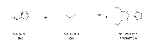 2.通过糠醛和乙醇合成2-糠醛缩二乙醇,收率约96%;