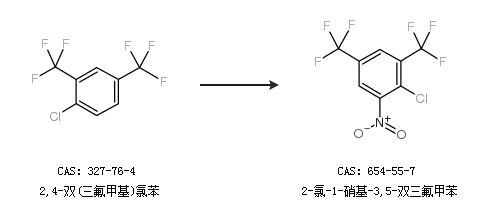 2.通过2,4-双(三氟甲基)氯苯、硫酸和硝酸合成2-氯-1-硝基-3,5-双三氟甲苯