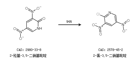 1.通过2-羟基-3,5-二硝基吡啶合成2-氯-3,5-二硝基吡啶,收率约94%;