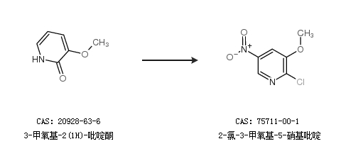 2.通过3-甲氧基-2(1H)-吡啶酮合成2-氯-3-甲氧基-5-硝基吡啶
