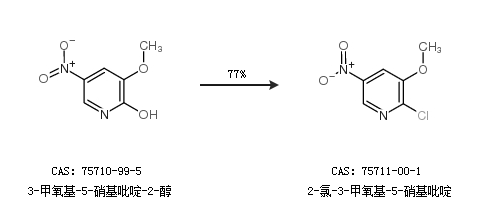 1.通过3-甲氧基-5-硝基吡啶-2-醇合成2-氯-3-甲氧基-5-硝基吡啶,收率约77%;