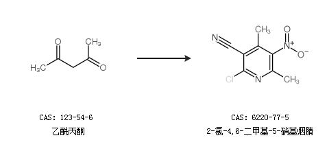 2.通过乙酰丙酮合成2-氯-4,6-二甲基-5-硝基烟腈