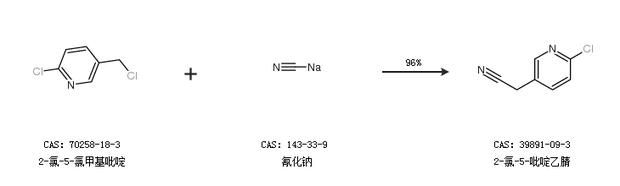 2.通过2-氯-5-氯甲基吡啶和氰化钠合成2-氯-5-吡啶乙腈,收率约96%;