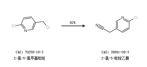 1.通过2-氯-5-氯甲基吡啶合成2-氯-5-吡啶乙腈,收率约82%;