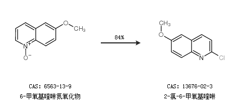 2.通过6-甲氧基喹啉氮氧化物合成2-氯-6-甲氧基喹啉,收率约84%;