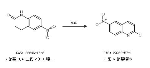 1.通过6-硝基-3,4-二氢-2(1H)-喹啉酮合成2-氯-6-硝基喹啉,收率约93%;