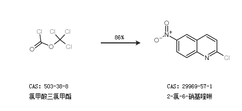 2.通过氯甲酸三氯甲酯合成2-氯-6-硝基喹啉,收率约86%;