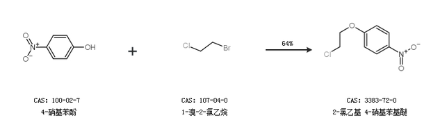 1.通过4-硝基苯酚和1-溴-2-氯乙烷合成2-氯乙基 4-硝基苯基醚,收率约64%;