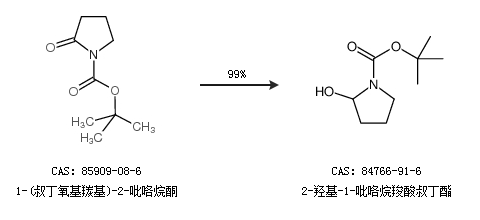 1.通过1-(叔丁氧基羰基)-2-吡咯烷酮合成2-羟基-1-吡咯烷羧酸叔丁酯,收率约99%;