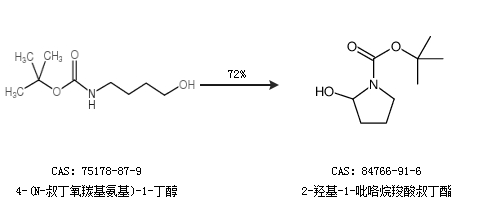 2.通过4-(N-叔丁氧羰基氨基)-1-丁醇合成2-羟基-1-吡咯烷羧酸叔丁酯,收率约72%;