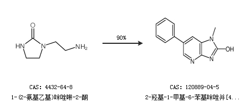 1.通过1-(2-氨基乙基)咪唑啉-2-酮合成2-羟基-1-甲基-6-苯基咪唑并[4,5-b]吡啶,收率约90%;