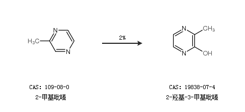 2.通过2-甲基吡嗪合成2-羟基-3-甲基吡嗪,收率约2%;