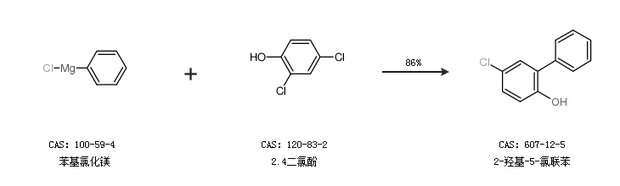 1.通过苯基氯化镁和2.4二氯酚合成2-羟基-5-氯联苯,收率约86%;
