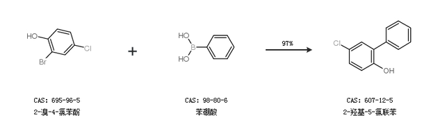 2.通过2-溴-4-氯苯酚和苯硼酸合成2-羟基-5-氯联苯,收率约97%;