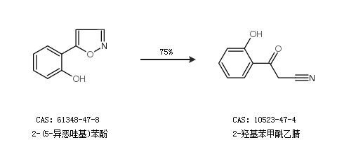 1.通过2-(5-异恶唑基)苯酚合成2-羟基苯甲酰乙腈,收率约75%;