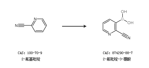 1.通过2-氰基吡啶合成2-氰吡啶-3-硼酸