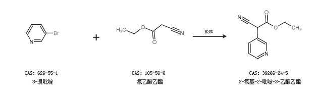 1.通过3-溴吡啶和氰乙酸乙酯合成2-氰基-2-吡啶-3-乙酸乙酯,收率约83%;