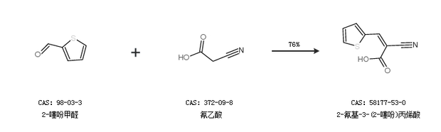 1.通过2-噻吩甲醛和氰乙酸合成2-氰基-3-(2-噻吩)丙烯酸,收率约76%;