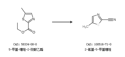 2.通过5-甲基-噻唑-2-羧酸乙酯合成2-氰基-5-甲基噻唑