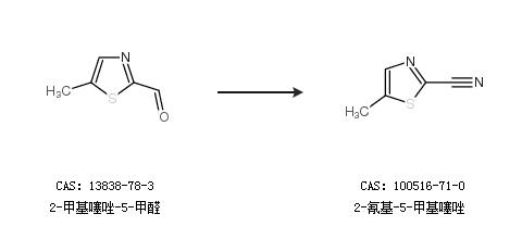 1.通过2-甲基噻唑-5-甲醛合成2-氰基-5-甲基噻唑
